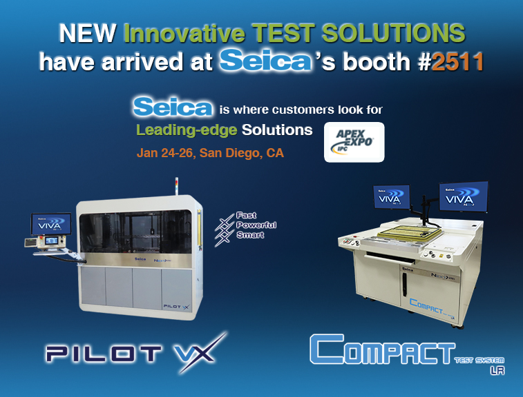 Customers looking for leading-edge test solutions can come to Seica’s booth 2511 and view the newest line of Flying Probe test on the market in the form of the PILOT VX platform, bed of nails ICT so